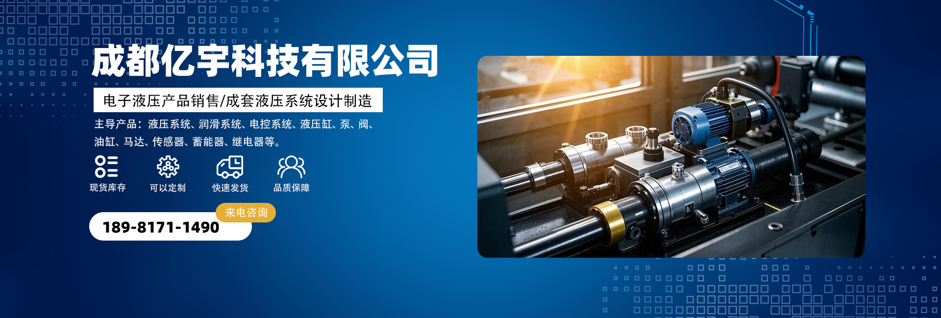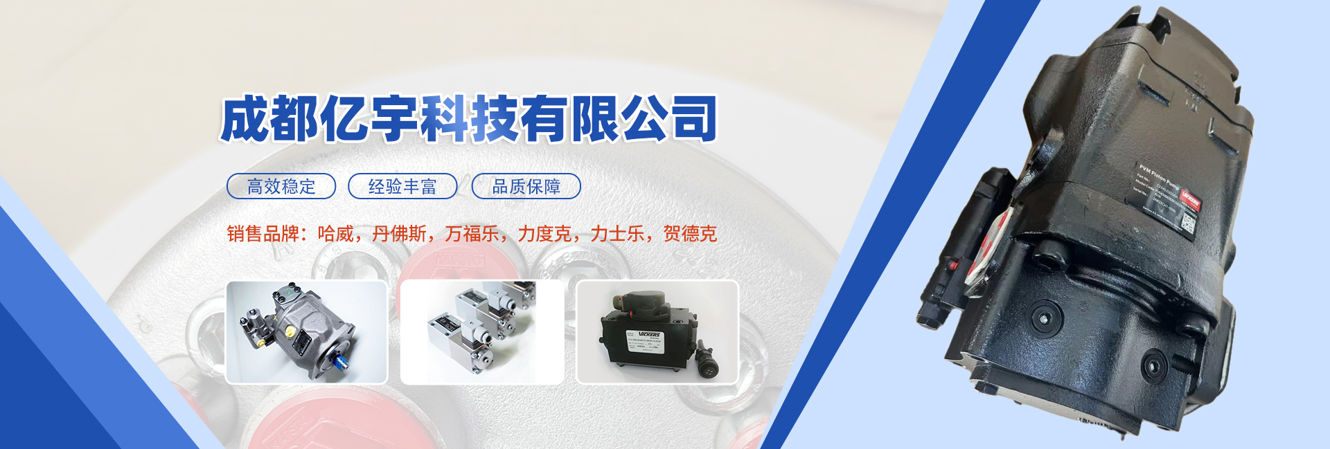 成都億宇科技有限公司是一家專業從事電子液壓產品銷售及成套液壓系統設計制造的高科技企業。 主導產品:液壓系統、潤滑系統、電控系統、液壓缸,泵,閥,油缸,馬達,接頭,管件,傳感器,蓄能器,繼電器,密封圈等。同時擁有熟悉國內外液壓機電產品的專業人員為您解決機械液壓方面的問題,并匯集了一批在流體傳動領域內具有豐富實踐經驗的專業技術人才,致力于各種高品質液壓產品及系統的研制工作。經過我們不懈的努力發(fā)展和創(chuàng)新,已與眾多國內外供應商建立了良好的合作關系,在價格及供貨周期上均有較